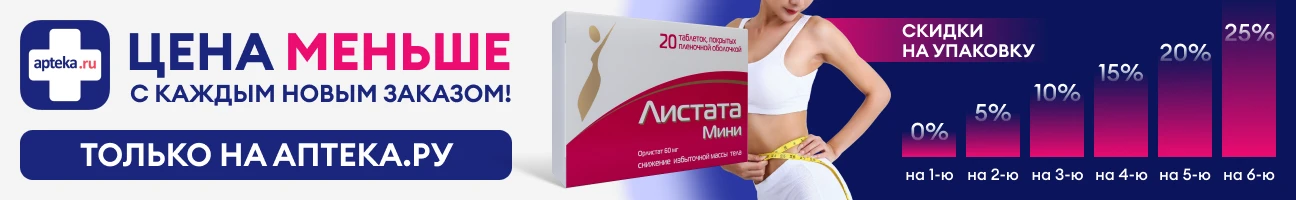 Листата Мини для снижения веса, стоимость которого вполне доступна, показывает хорошие результаты уже после приема первых доз препарата. Предварительно нужно обязательно изучить инструкцию. При соблюдении оптимальной дозировки побочные эффекты не наблюдаются.